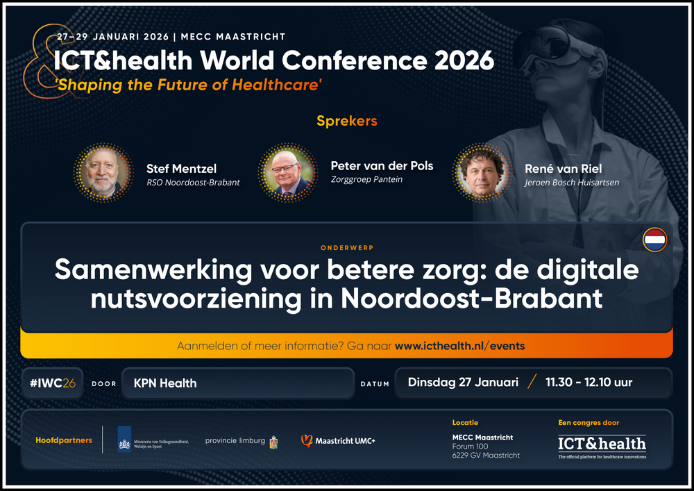 Op 27 januari 2026 staan Peter van der Pols, Rene van Riel en ik tijdens de ICT&health World Conference in Maastricht stil bij een vraag die groter is dan technologie alleen: hoe bouwen we samen aan de ondersteuning van een zorgsysteem dat ook over twintig of dertig jaar nog houdbaar, toegankelijk en mensgericht is?